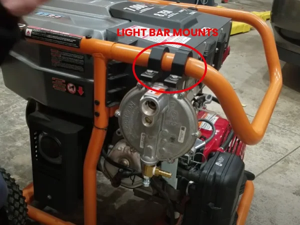 I mostly use light bar mounts to avoid drilling, light bar mounts can be attached to the metal bars of the generator and can hold the conversion kit perfectly.